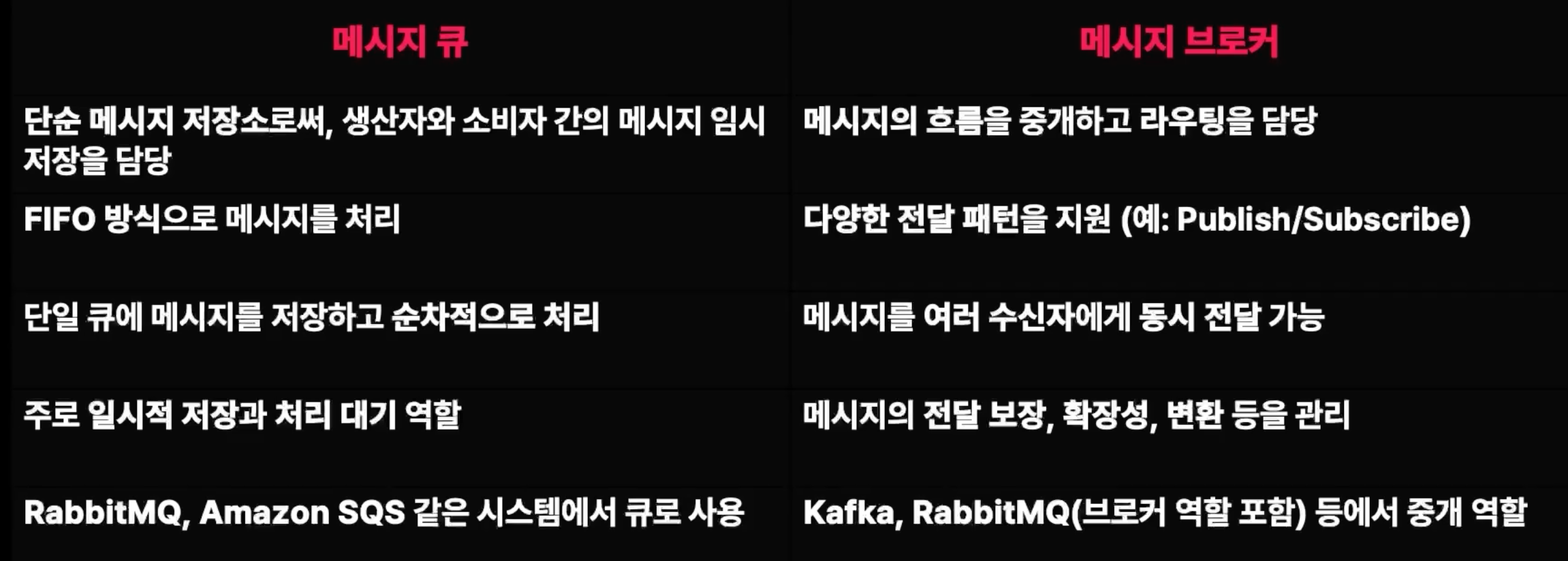 - 메시지 큐와 메시지 브로커가 이러한 비동기 메시징 시스템의 핵심 요소