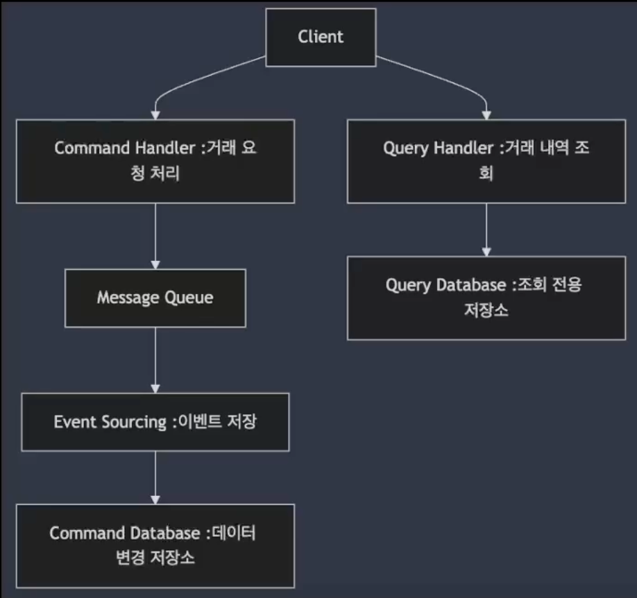- Command Handler : 데이터를 변경하는 작업을 처리, 이때 메시지 큐를 사용해 명령이 큐에 저장되고, 비동기적으로 처리