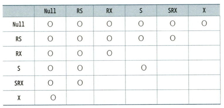 - 로우 Lock은 항상 배타적 모드를 사용하지만 테이블 Lock에는 여러 가지 Lock 모드를 사용한다. 아래 표는 모드간 호환성을 정리한것이다.
